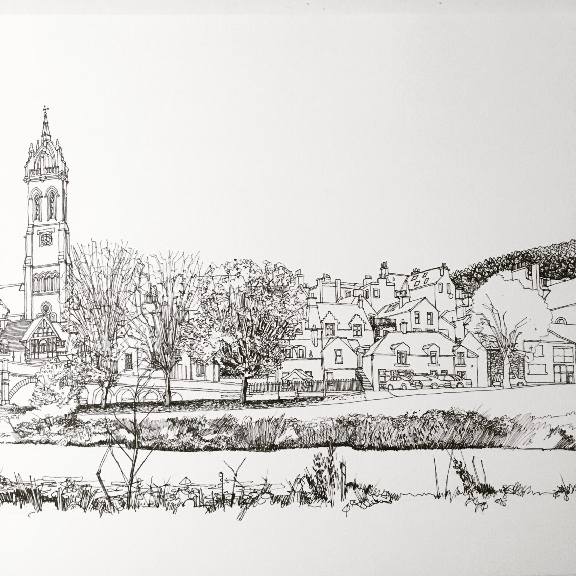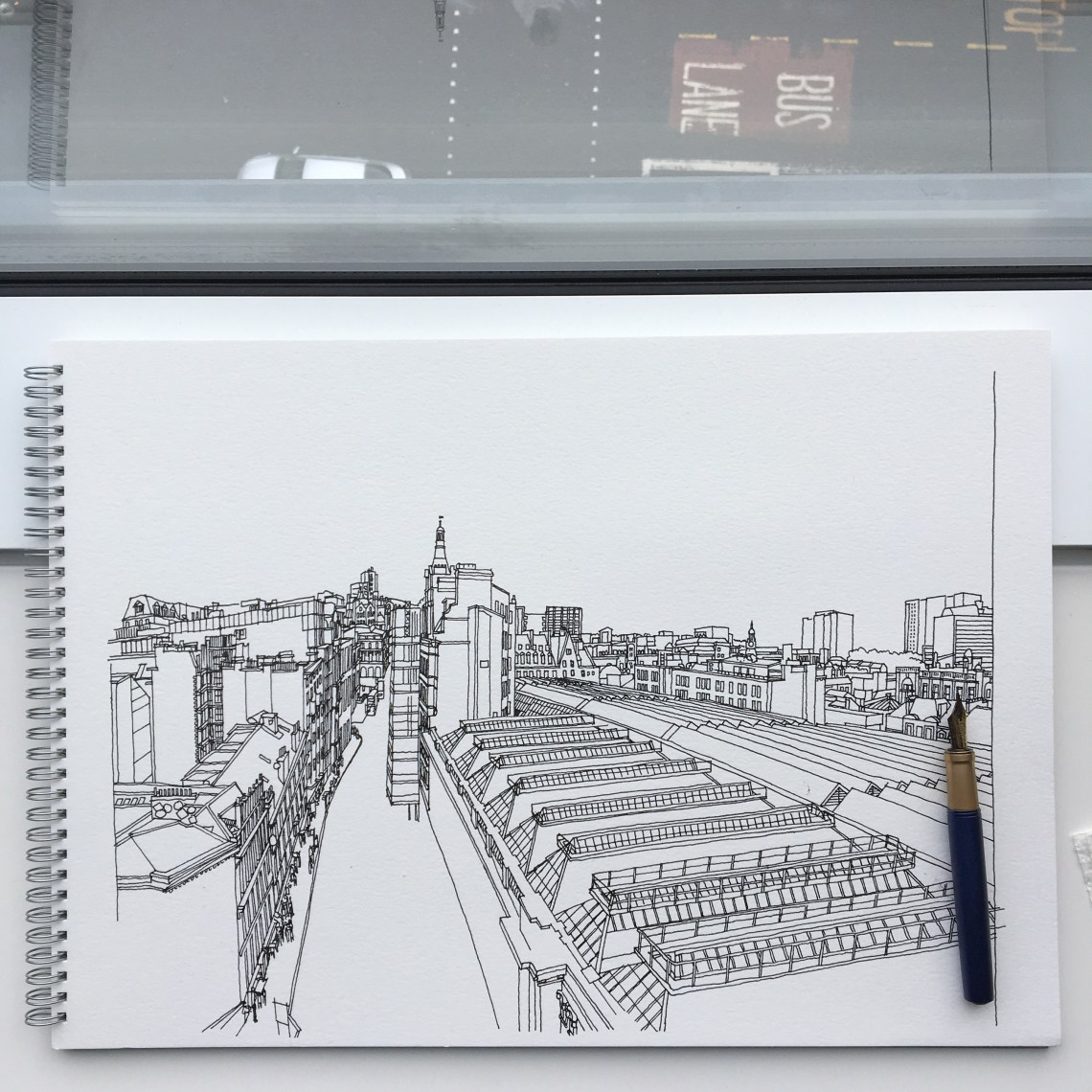 I’m also gearing up to exhibit at the Borders Art Fair in the Spring, so am collecting line drawings on some very heavy watercolour paper, ready for some colour work when the days get brighter and I have enough drawing work done for the show. I have a couple of free days this term so will be out and about drawing in the city and Border Country.