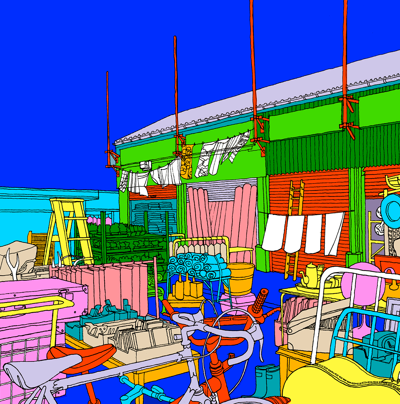 Drawn from memories of searching through the vibrant offerings to be found in Glasgow’s famous East End markets. Available as a 30x30cm giclee print and with a custom background colour if there’s a specific colour you’d like!